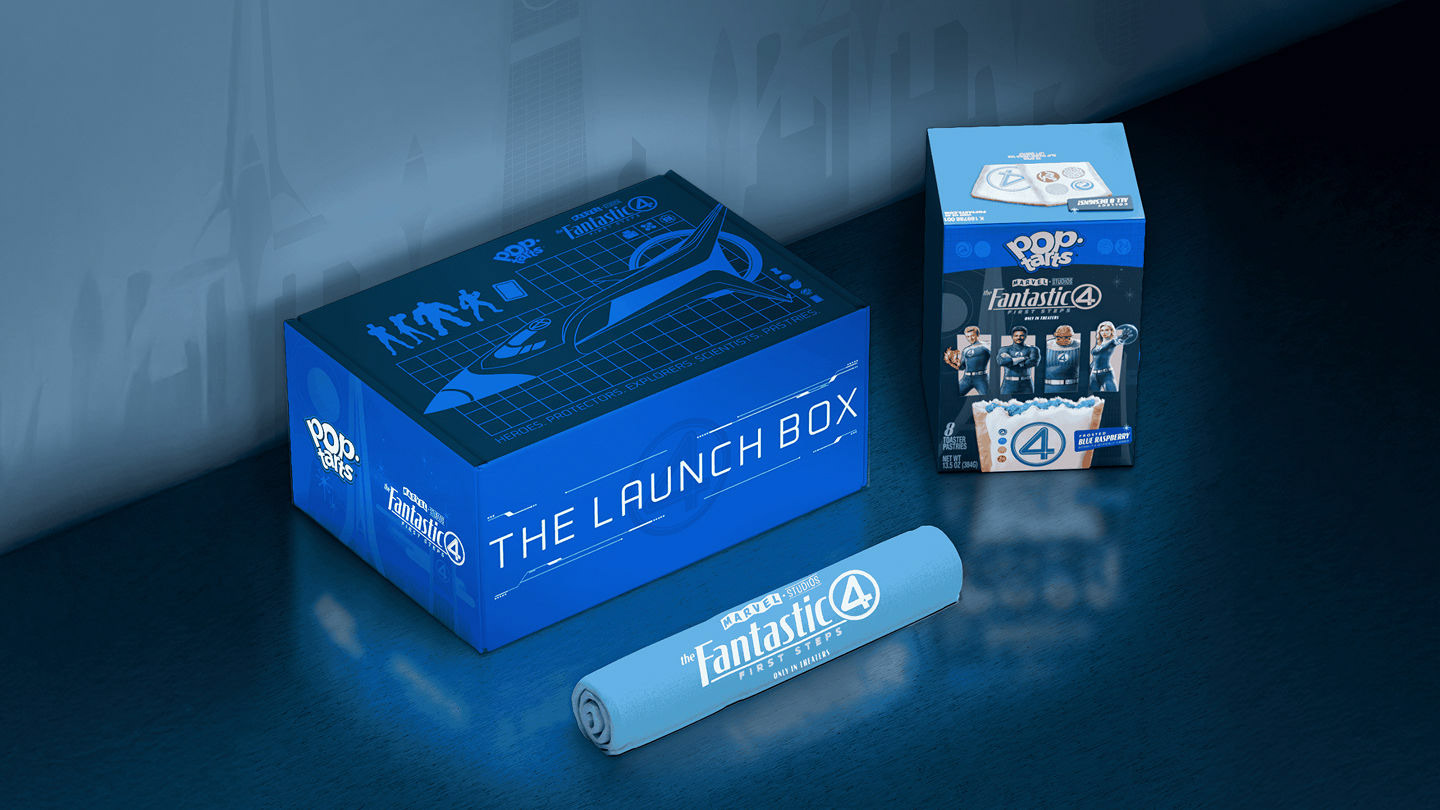 What better cult fan followings to unite than PopTarts' fans and Fantastic 4 fans? While at Design B&B, we created promotional packaging to celebrate both the popular blue raspberry flavor, as well as the launch of the new film.